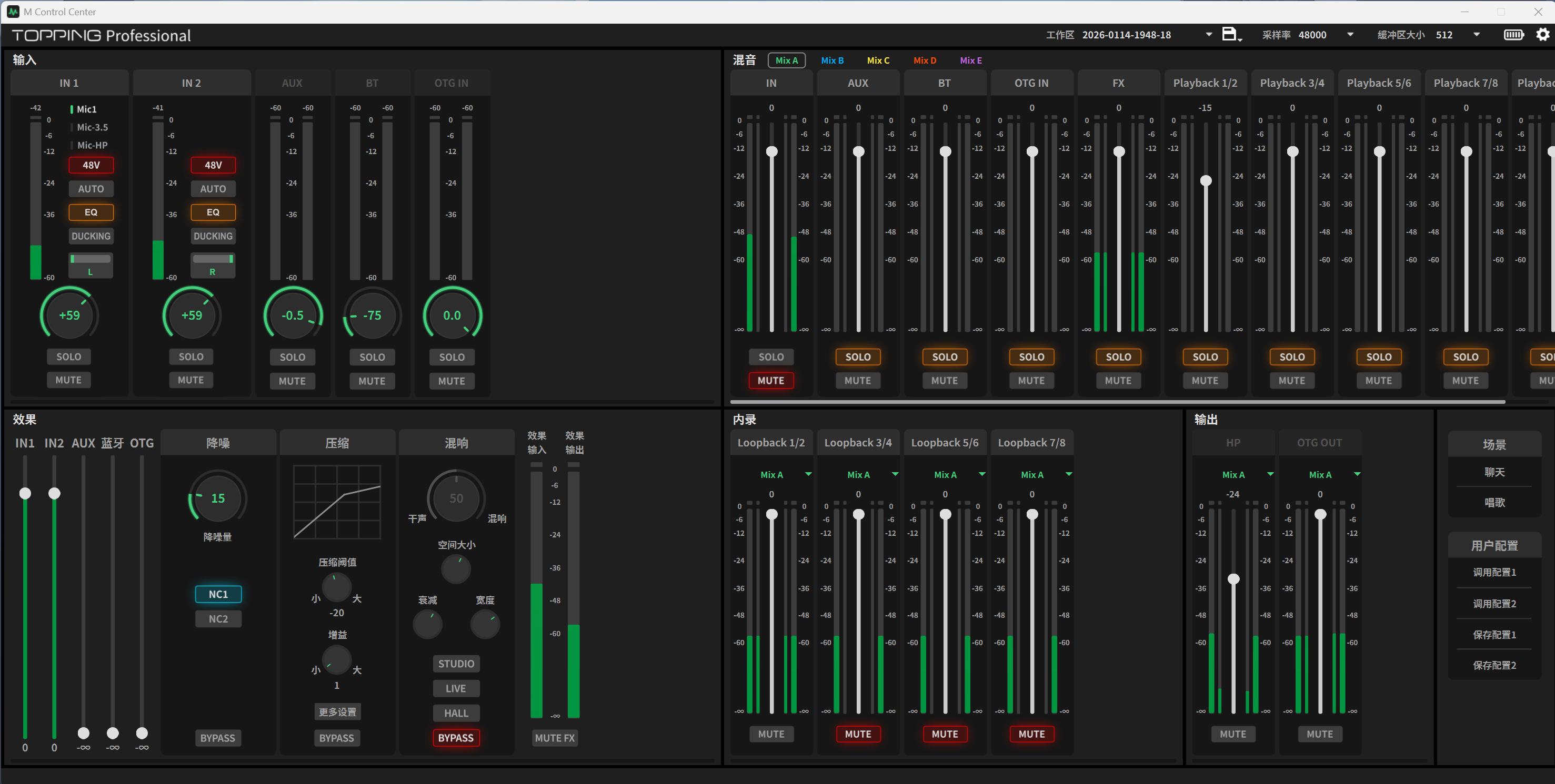 M62 不仅仅是硬件强,软件层面的 M Control Center 也非常专业且操作便捷,内置了以前需要在电脑端宿主软件里才能挂载的效果器: