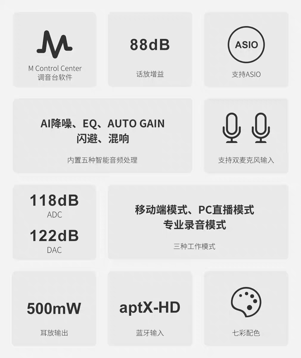 "专业录音模式”的限制 : M62 宣传有三种模式(手机直播模式、PC直播模式、专业录音模式)但最核心的“专业录音模式”(也是作为声卡素质最高的模式可以开启96Khz),在这个模式下,直连手机是无法直接发声的,必须连接电脑才能正常工作。如果你原本打算带着它连手机在户外享受最高规格的录音体验以及有耳机EQ需求的,这个限制会让你比较难受。